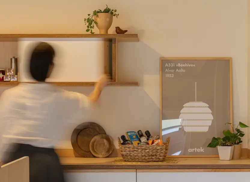 無垢材を使ったオーダーの造作家具や、収納や照明なども制作しています。