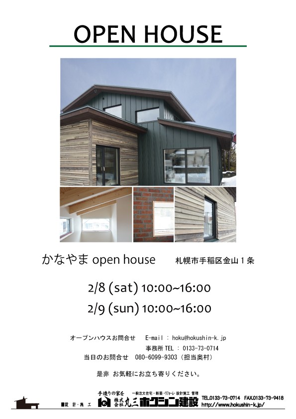 2月8日(土)、9日(日)は手稲区金山でオープンハウスです!!
