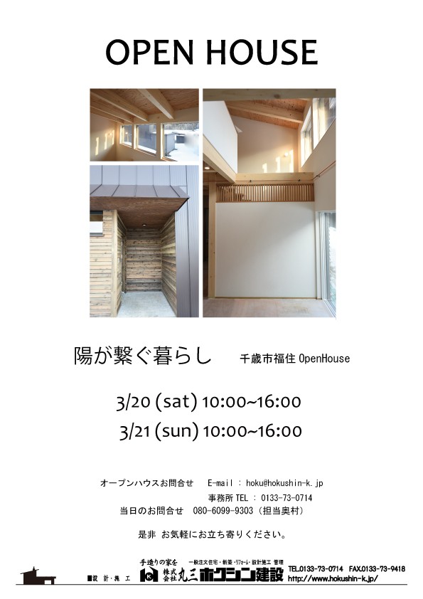 3月20日(土)・21日(日)オープンハウスさせて頂きます!!