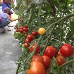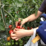 ビニールハウスの中へ入ると た~くさんの真っ赤なミニトマト。トマトの採り方を教わって いざ収獲!