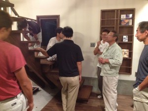 前回の物件で階段に注目があつまり、ひそかにプレッシャーになっていたという渡辺棟梁! この笑顔が物語っておりますが、首藤社長、設計の兼田とともに大満足の仕上がりです。渡辺棟梁お疲れ様でした!!