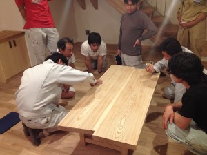 お施主さんから ご要望があった 小林大工作のテーブルも オープンハウスでも大好評!