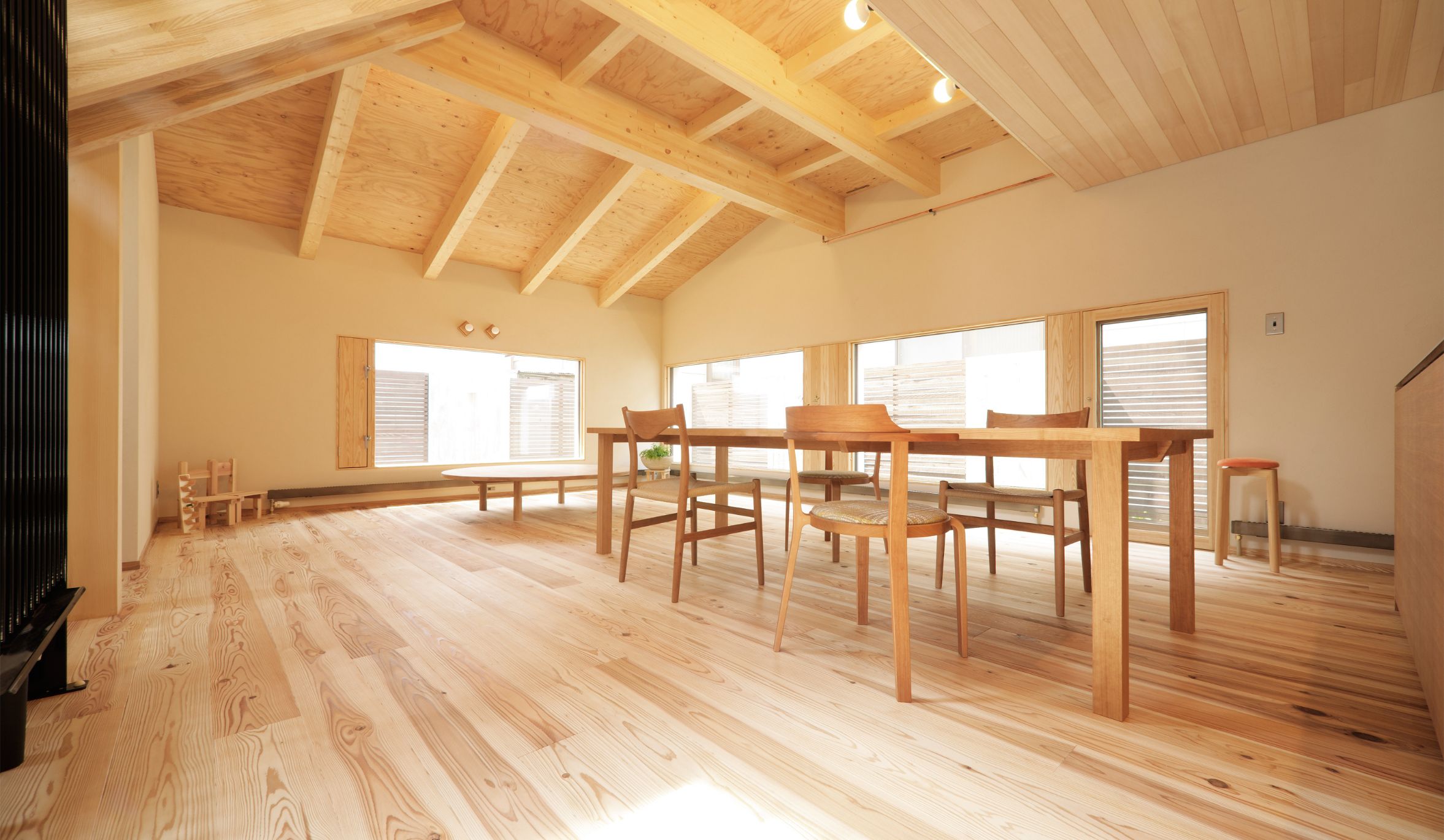 手刻みの構造材が見える天井や、無垢材の床で包まれた室内。
