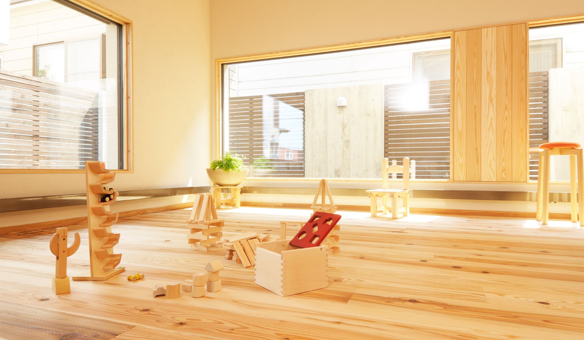 大工の伝統技術で仕上げられた空間は、木の香りと柔らかな肌触りが心地よく、まるで自宅で過ごすような感覚で体感できます。冬は暖かく、夏は涼しい高断熱・高気密の快適さも、ぜひ現地でご確認ください。