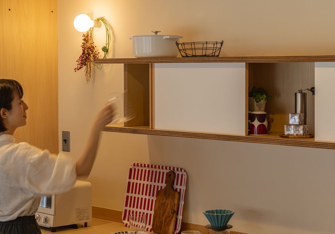 キッチンや収納、飾り棚など細部まで手仕事の息づく空間。