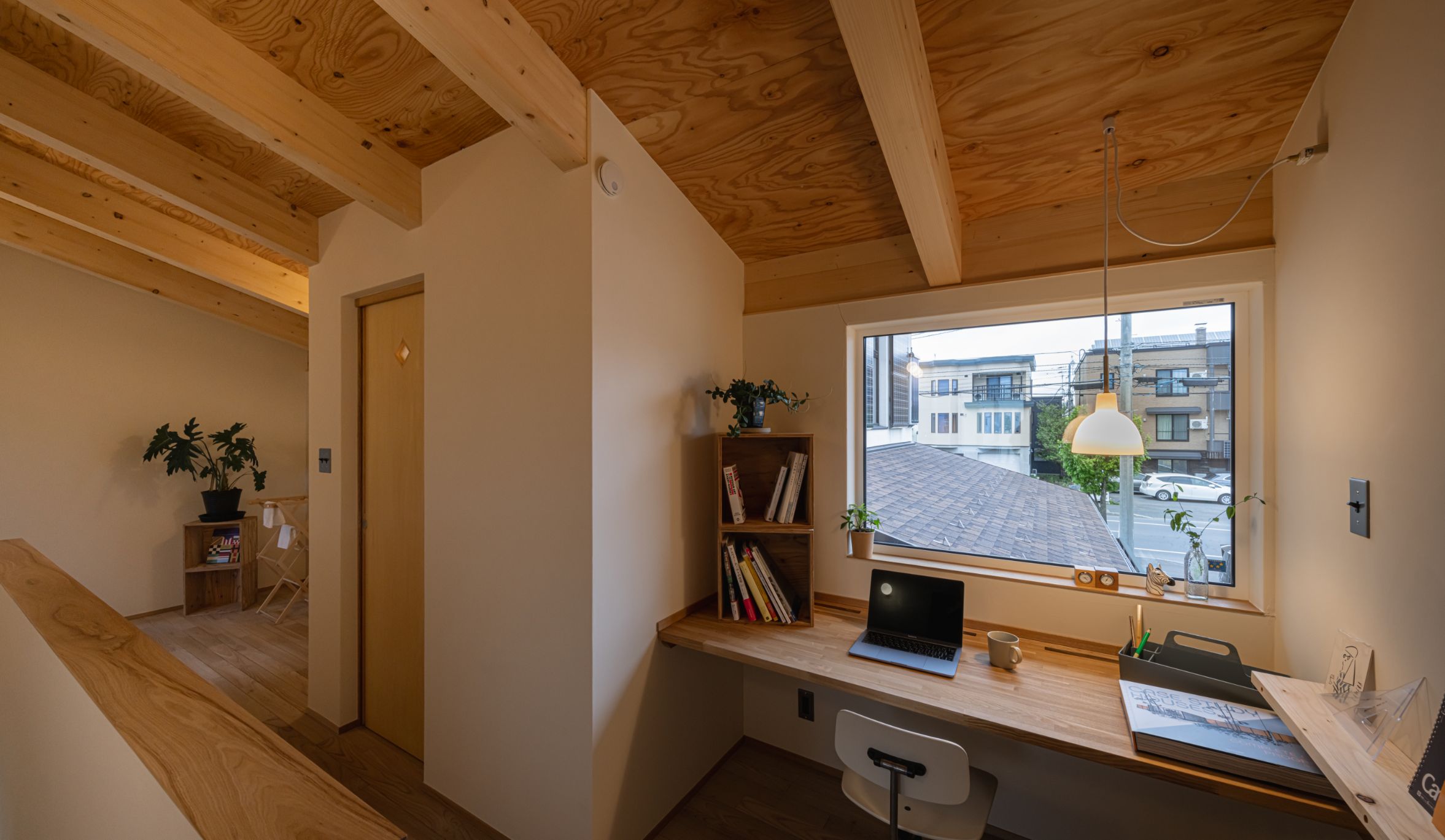 窓からの光を取り込む開放感ある間取り。窓辺の飾り棚、暮らしを楽しむ設え。