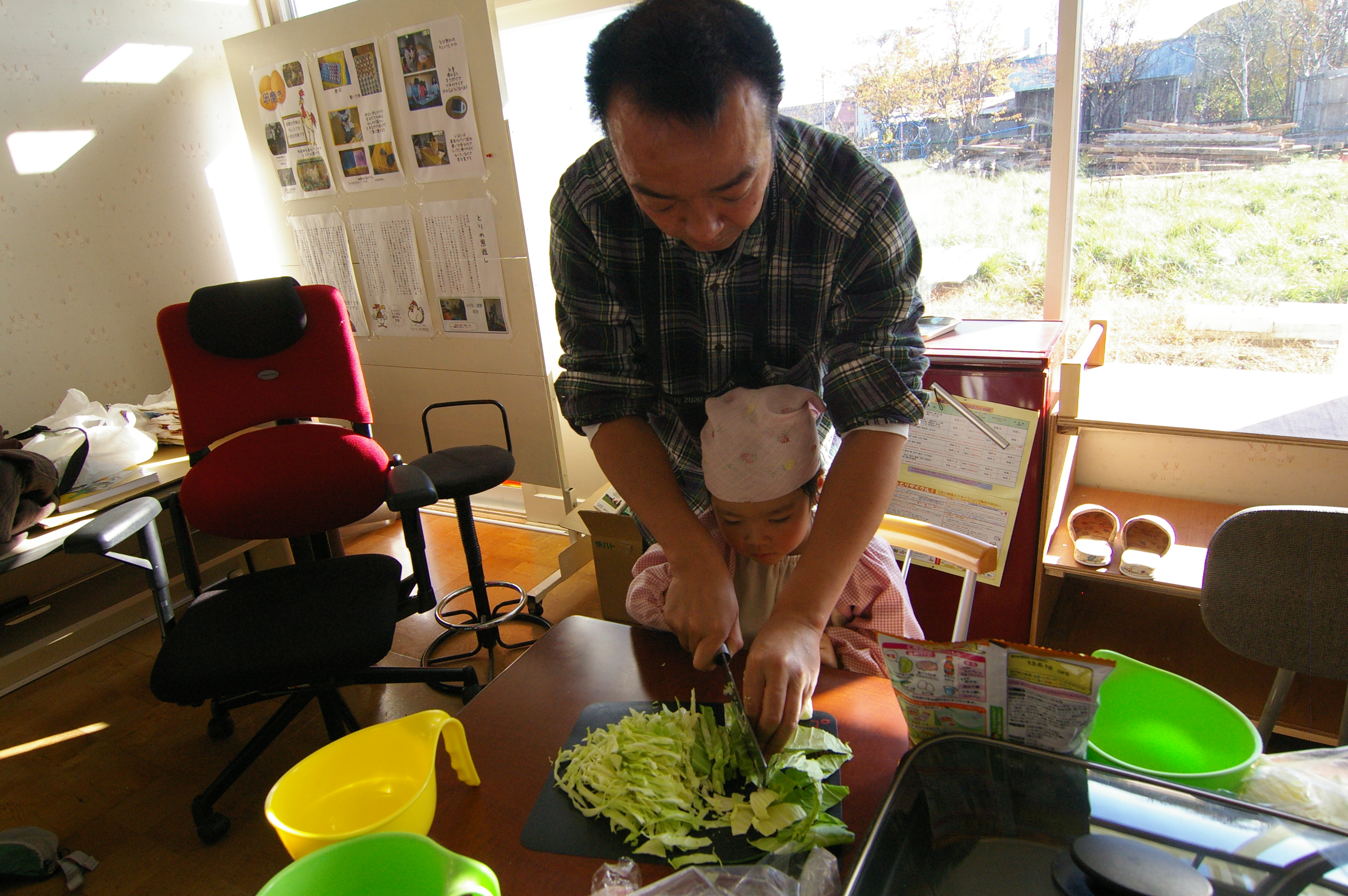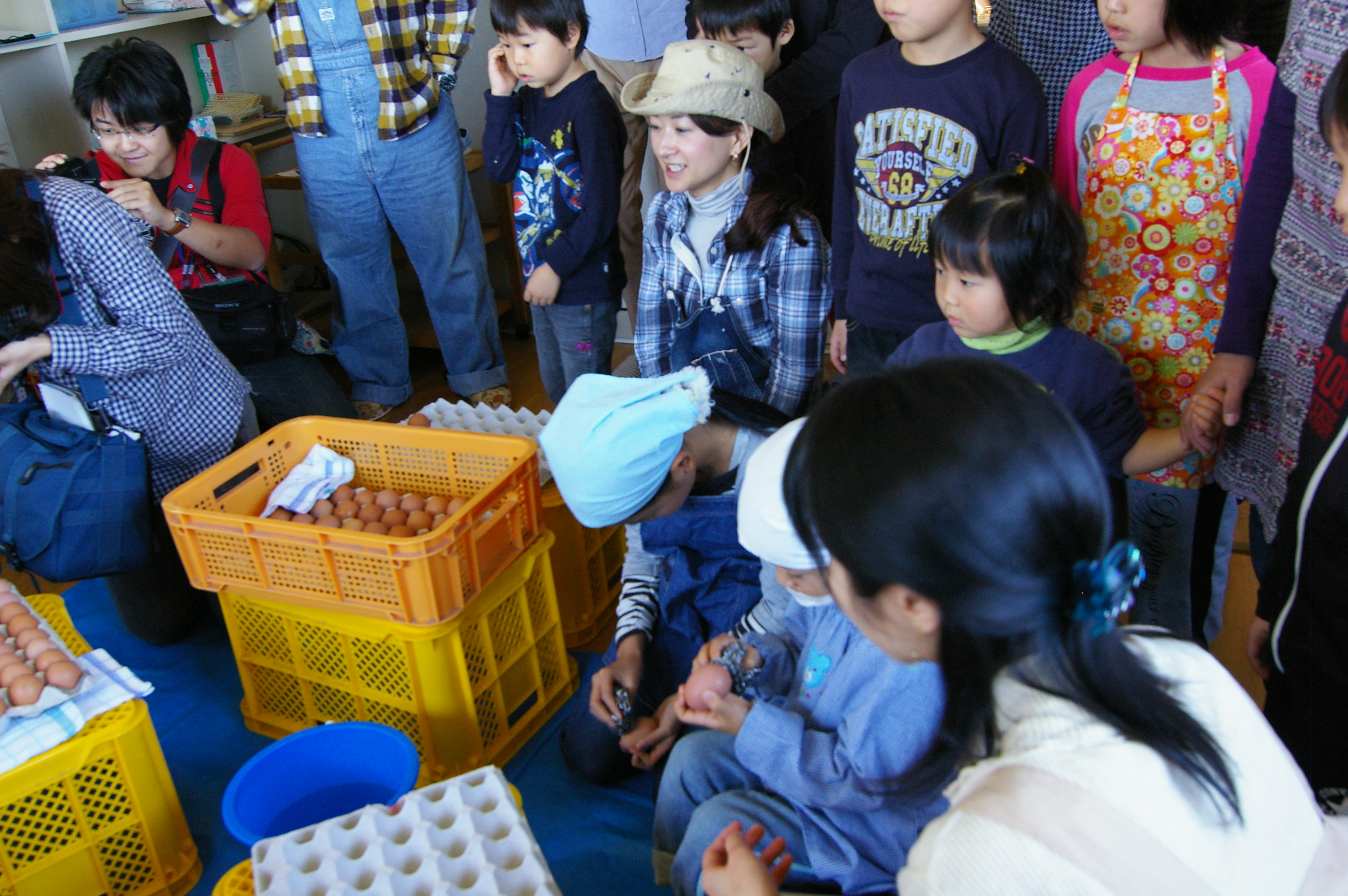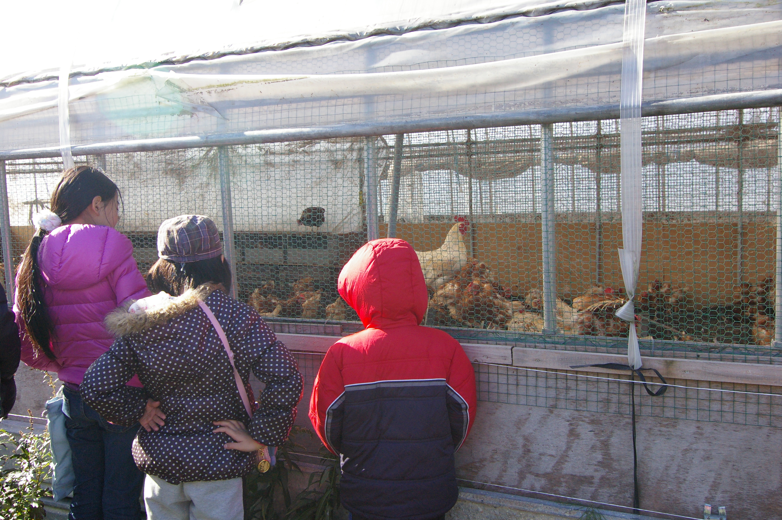 ニワトリさんがたくさんいるではありませんか?参加していただいたお子さん達もだんだん前に出て見ています。