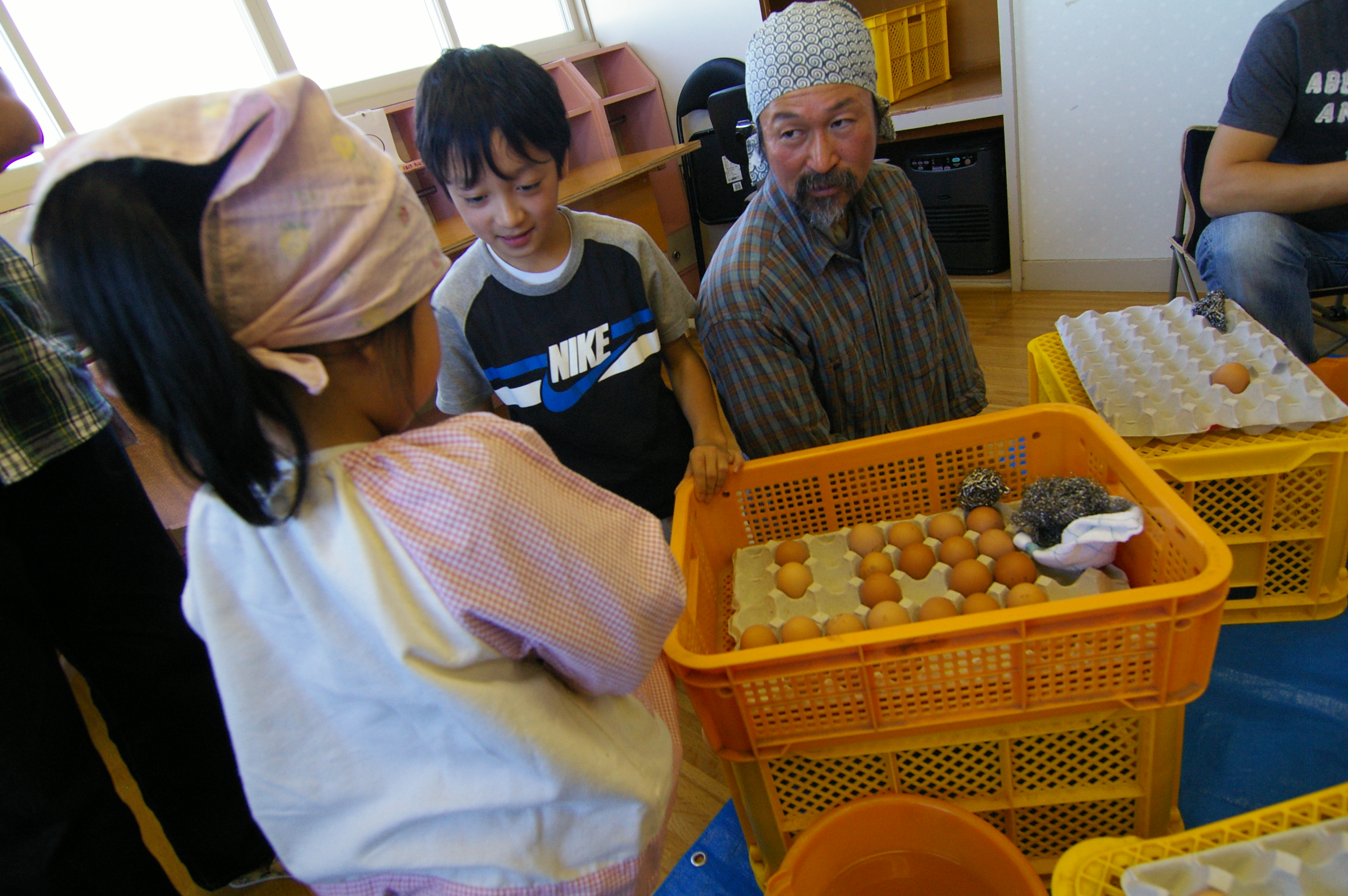 さて、今度は卵磨き。ノーザンノーザンの小さな社長にも卵の磨き方などを教えてもらいました。
