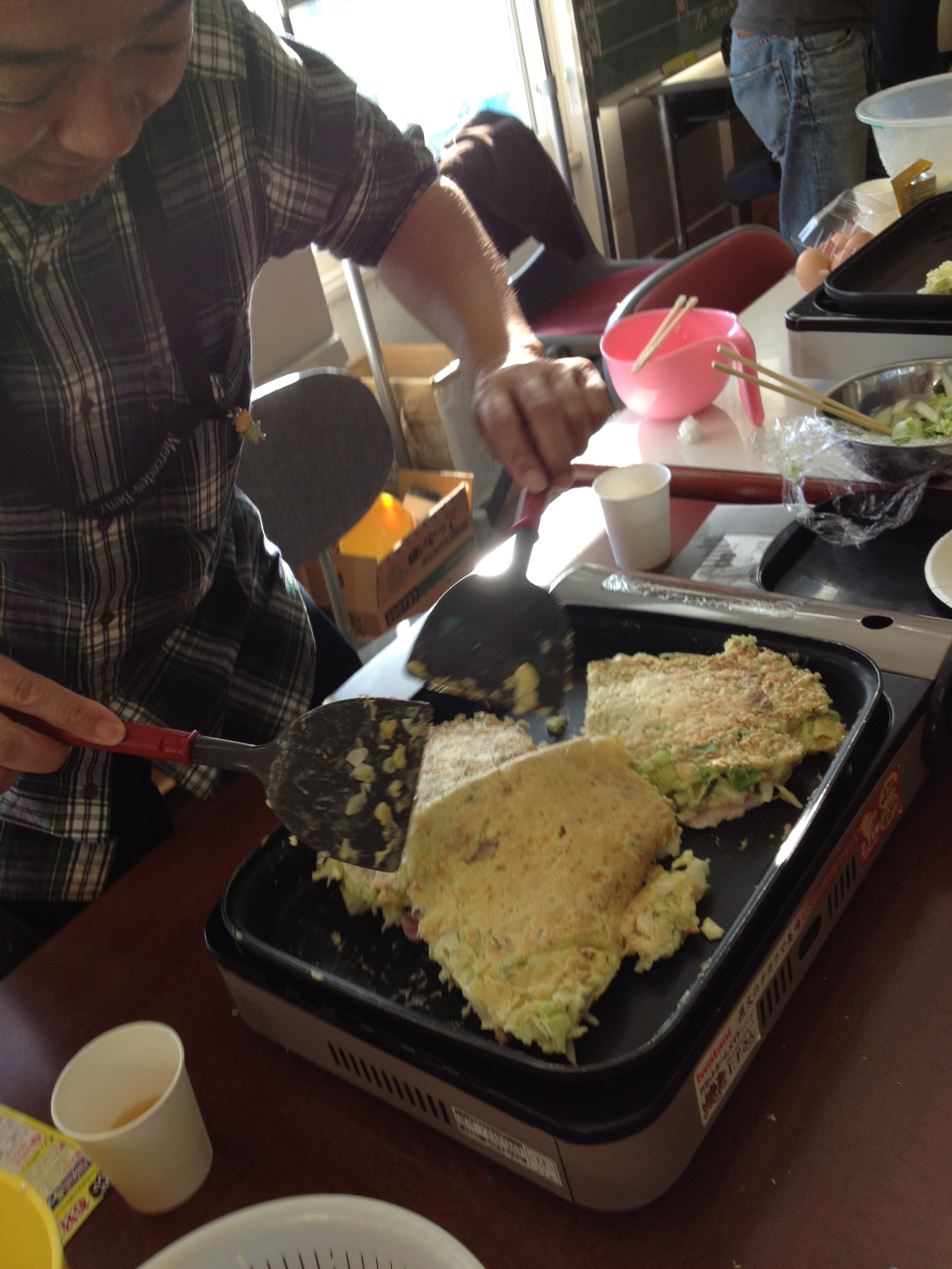 ボリューム満点!大きいお好み焼きができそうです。上手く返せるかな・・・「せーの!」