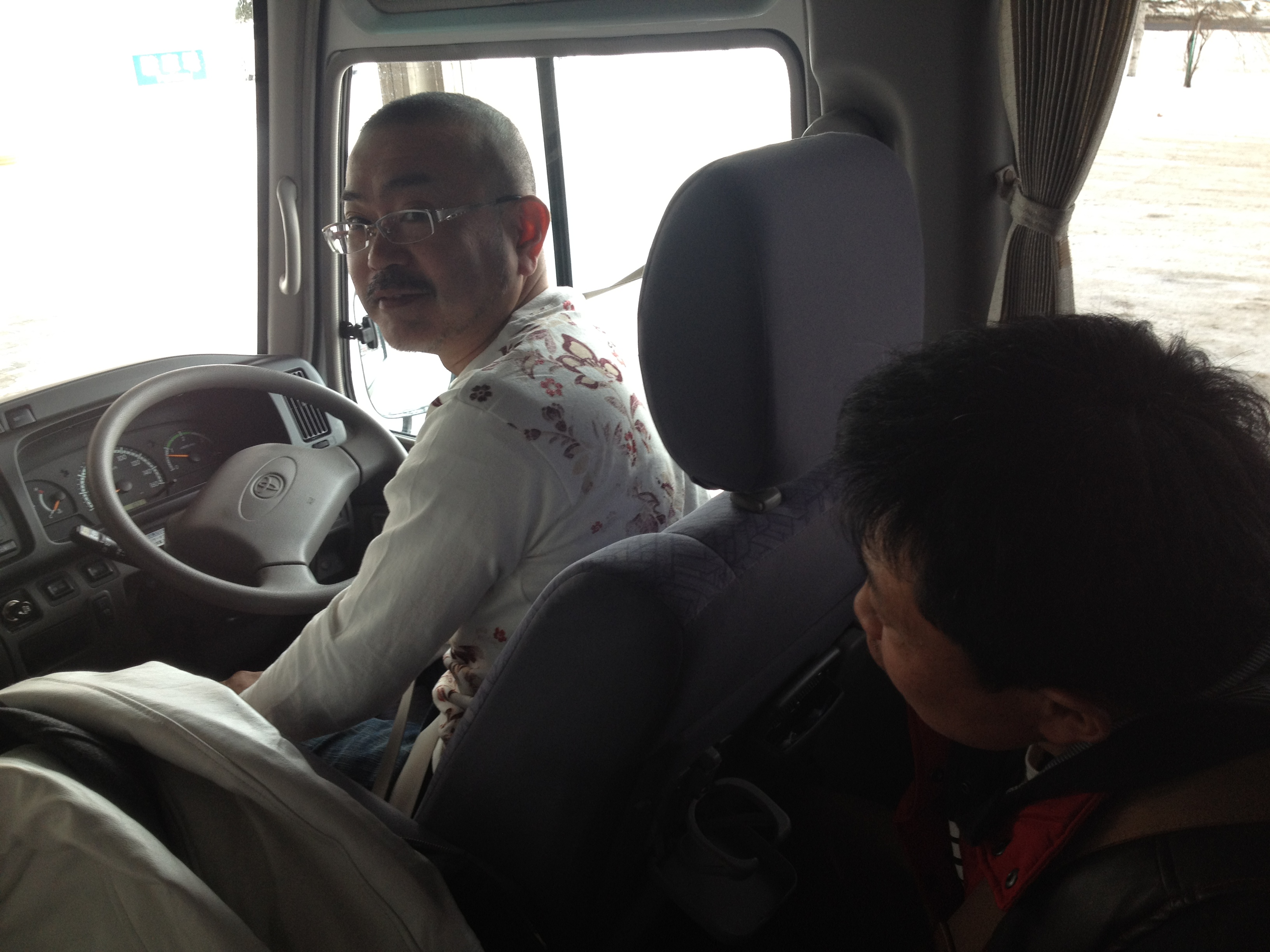 お世話になっている業者さんにもご参加いただいて、 運転手は岡田、バスガイドは小林でいざ出発!