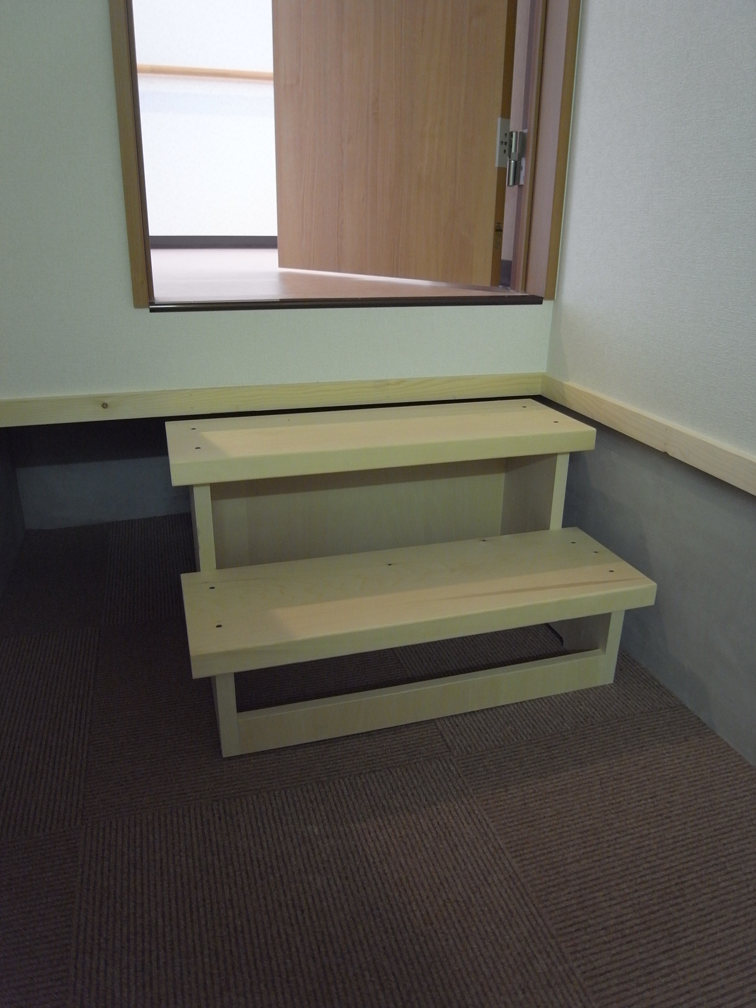 内装の色合いも優しく、皆さんが集まるホールには木の柱が建ち、物置には大工手造りの木の階段、集合住宅の仕様の中にもホクシンらしさを出しています。