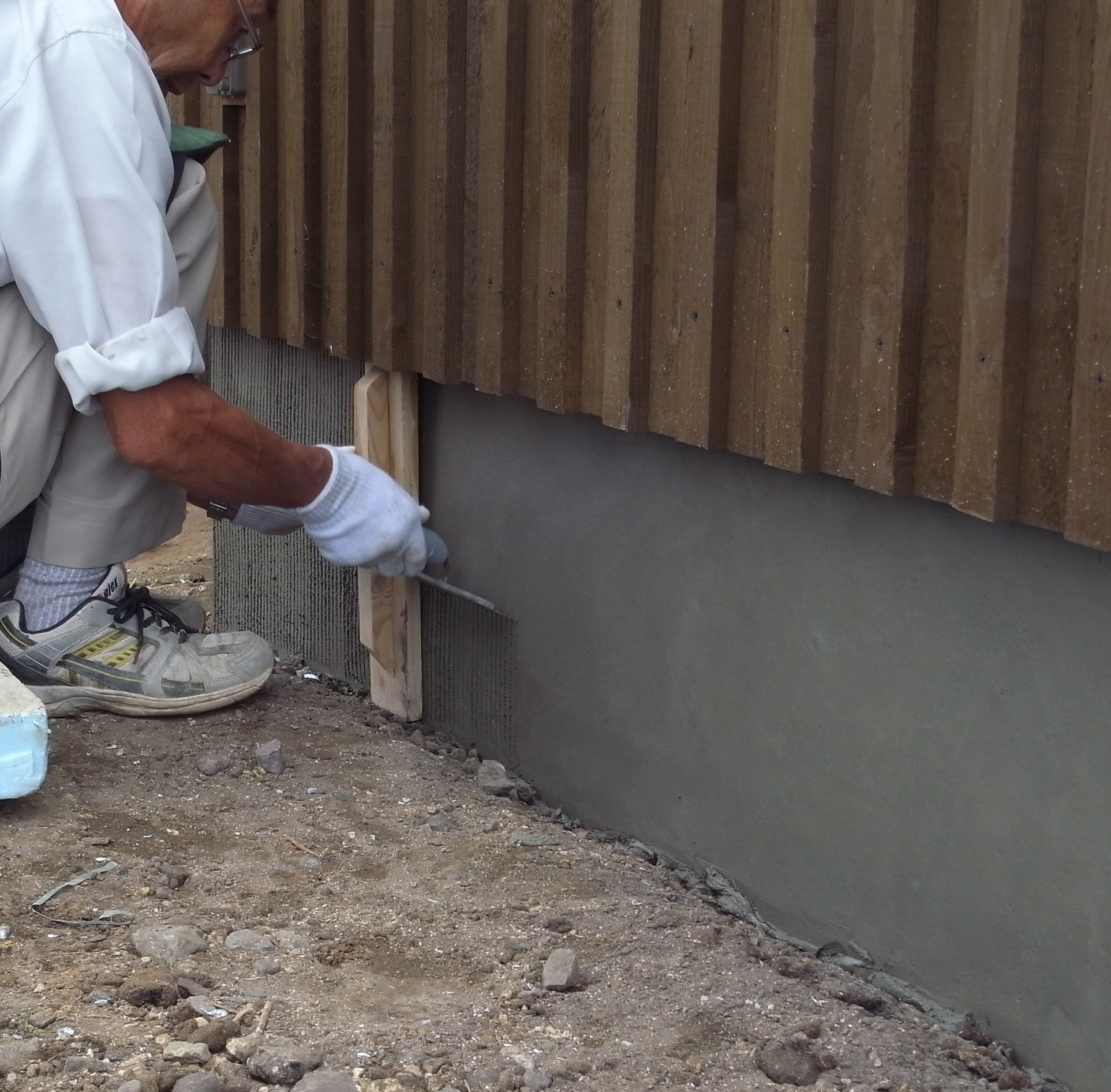 基礎のモルタル仕上げが入ると建物も引き締まってきますね!!