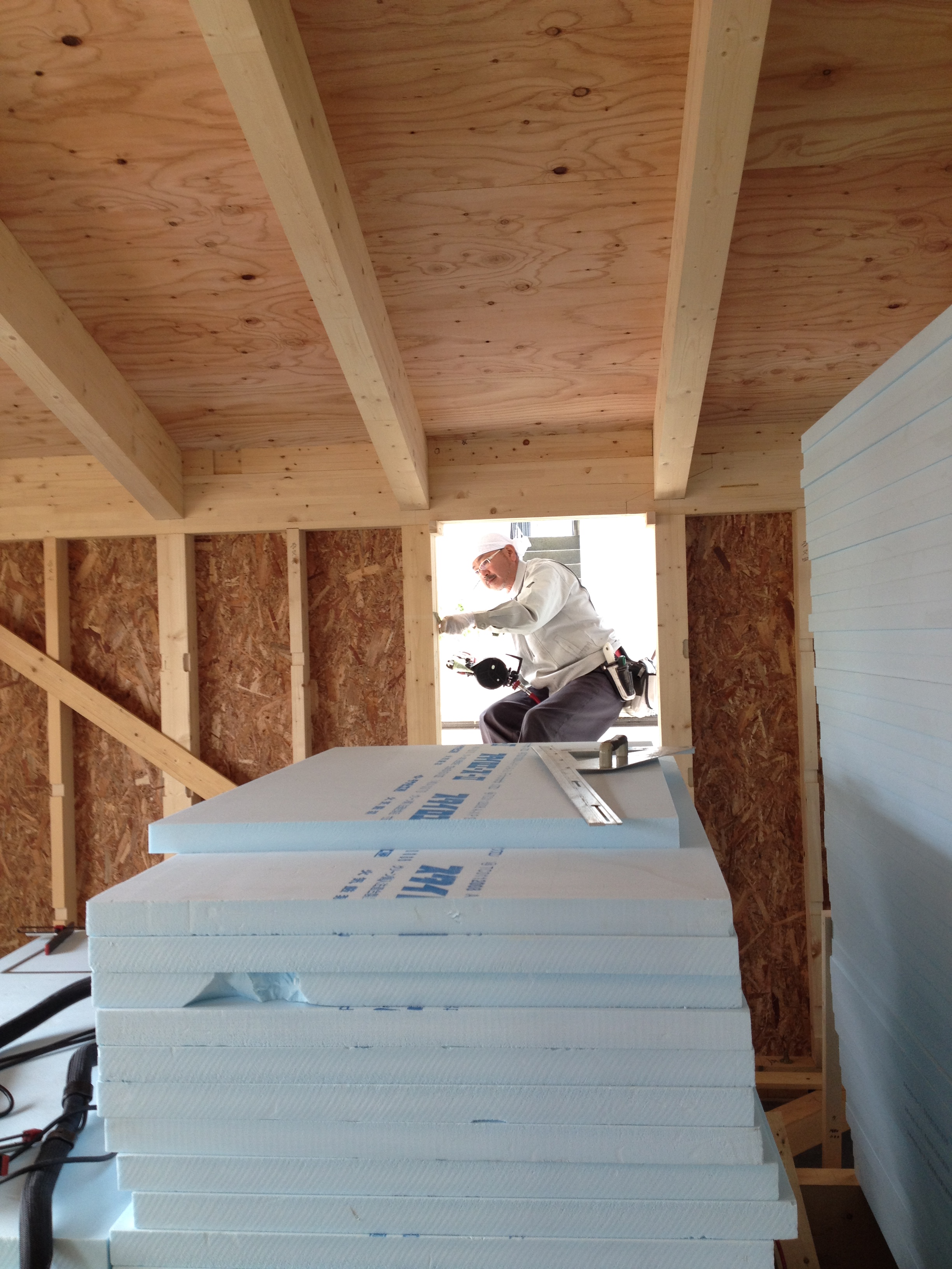 一番寒い時期の建込みでしたが、棟梁も春とともに一安心といったところでしょうか?!