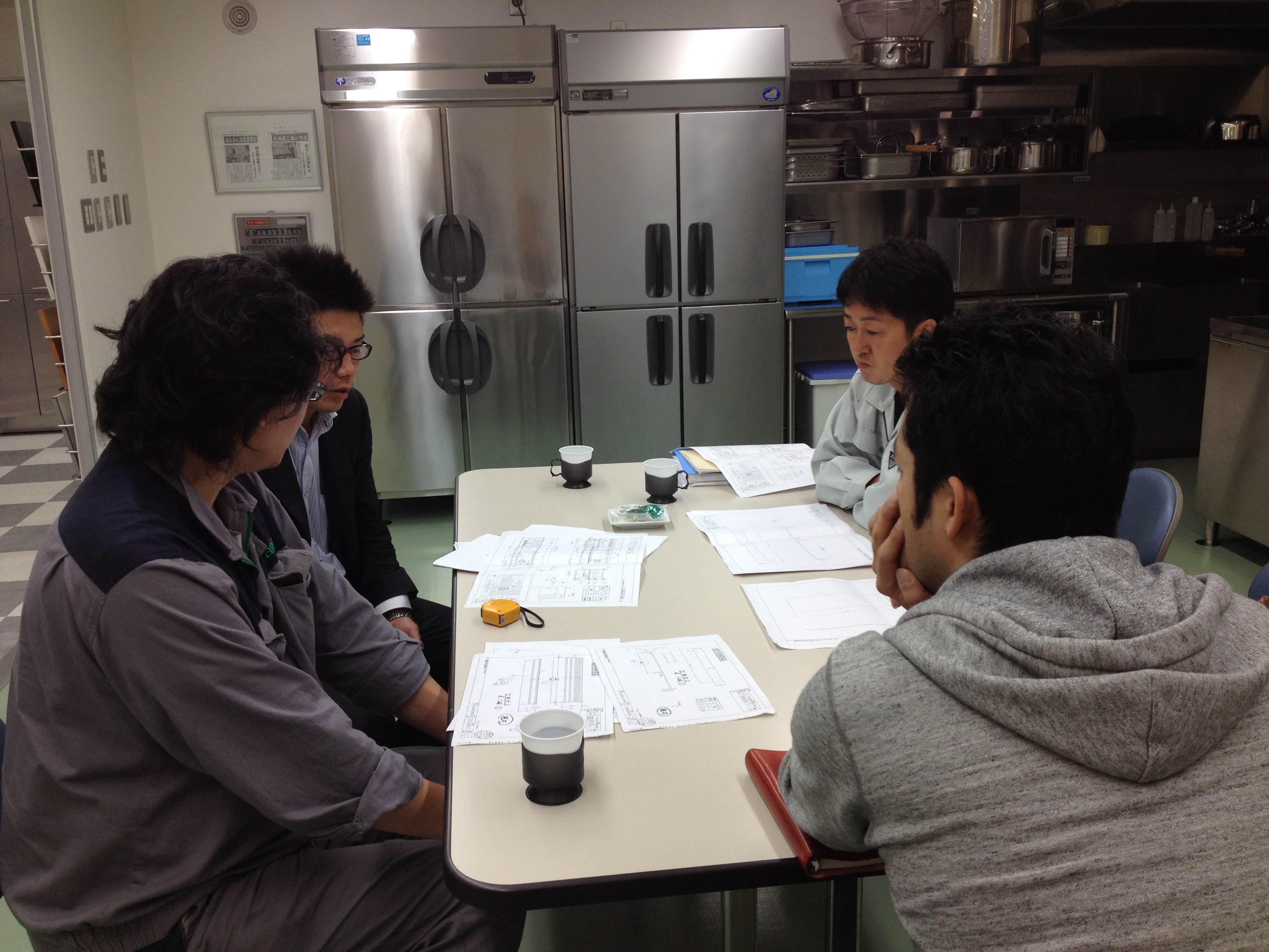 いつも事務所で打ち合せをしているのですが、今回は職人さんとの打ち合わせを兼ねて 工場見学もさせて頂きました!!
