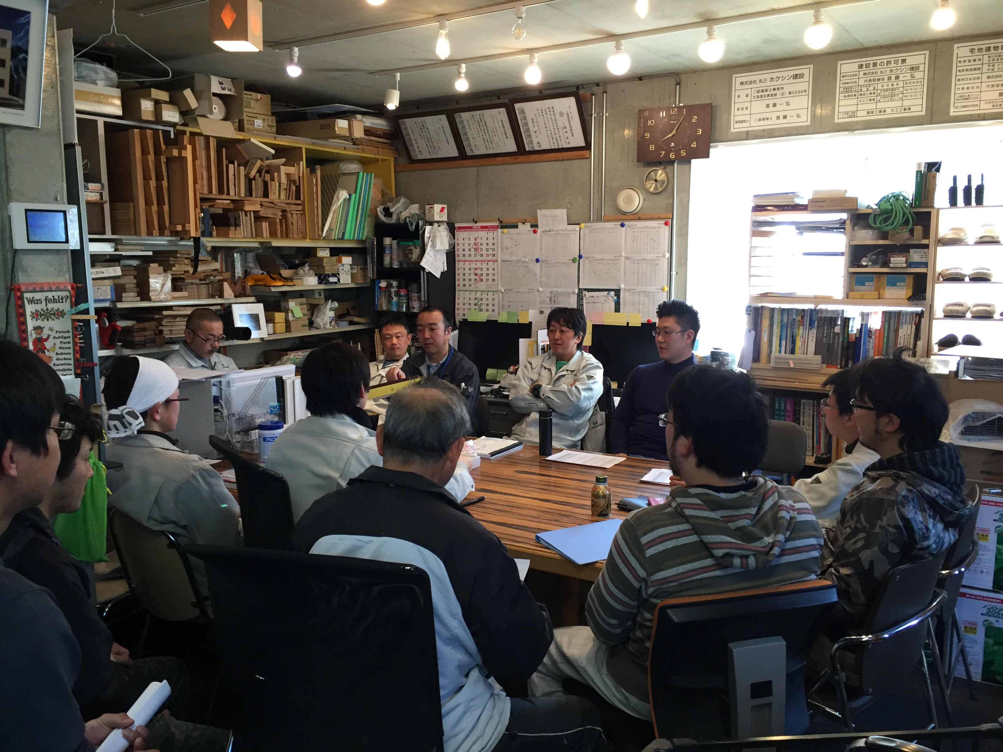 ホクシン大工さん、スタッフの新生活は・・・作業場は 墨付けラッシュで 現場ではお引渡し物件の仕上げ。事務所はこれから着工の準備で お陰様で大忙しの新生活です。