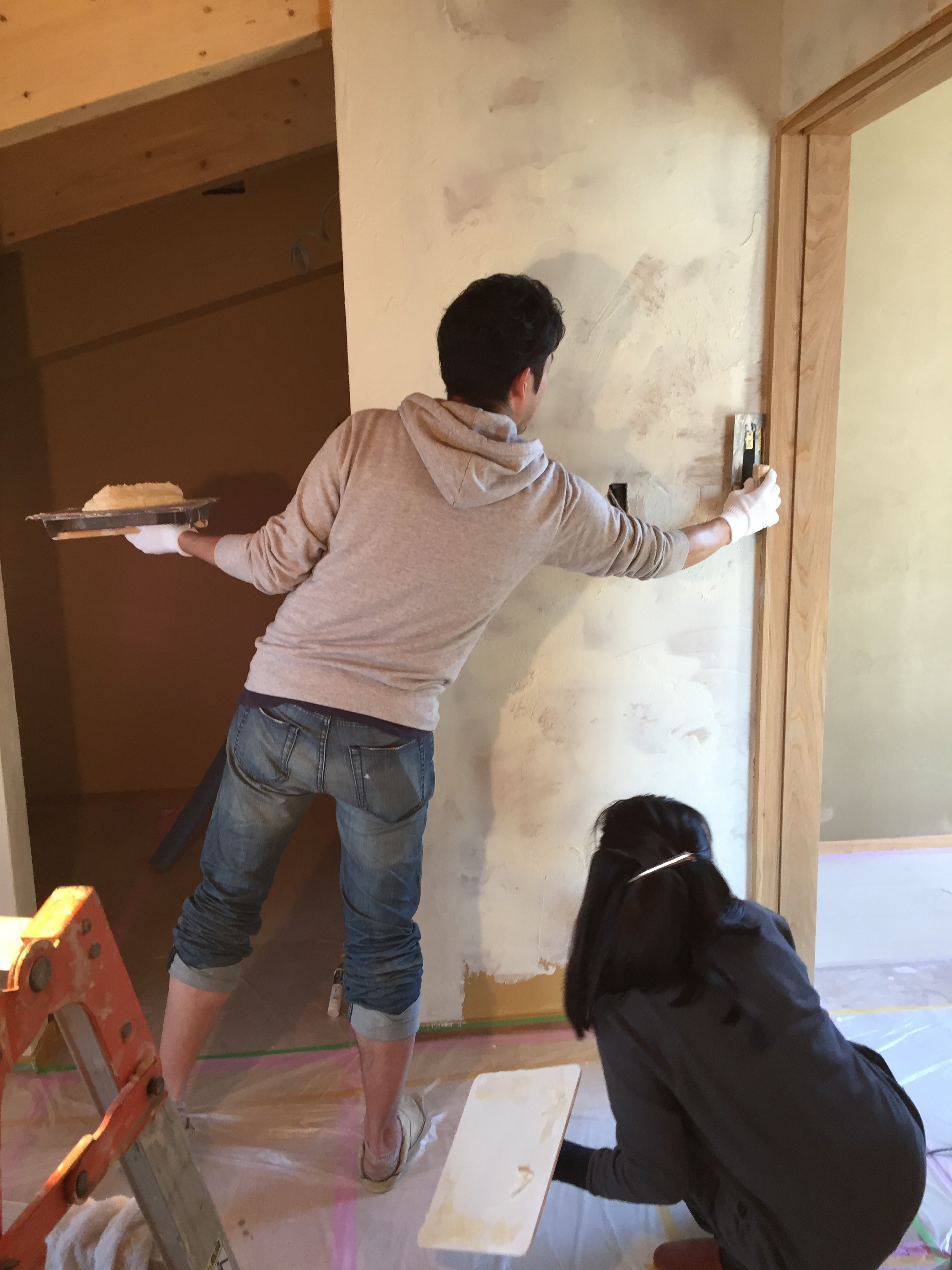 担当大工さんじゃなくても、空いた時間を利用してピンチヒッターで作業を進めたり、雨の日でも 次の現場に差し支えないようにと ウッドデッキを仕上げたり、さりげなく仕上げ補修に入っていたり、塗り壁を一部ですが事務所スタッフで仕上げたり、オープンに当たりの買出し、大工さんと事務所スタッフそれぞれができることで造り上げたモデルハウス。