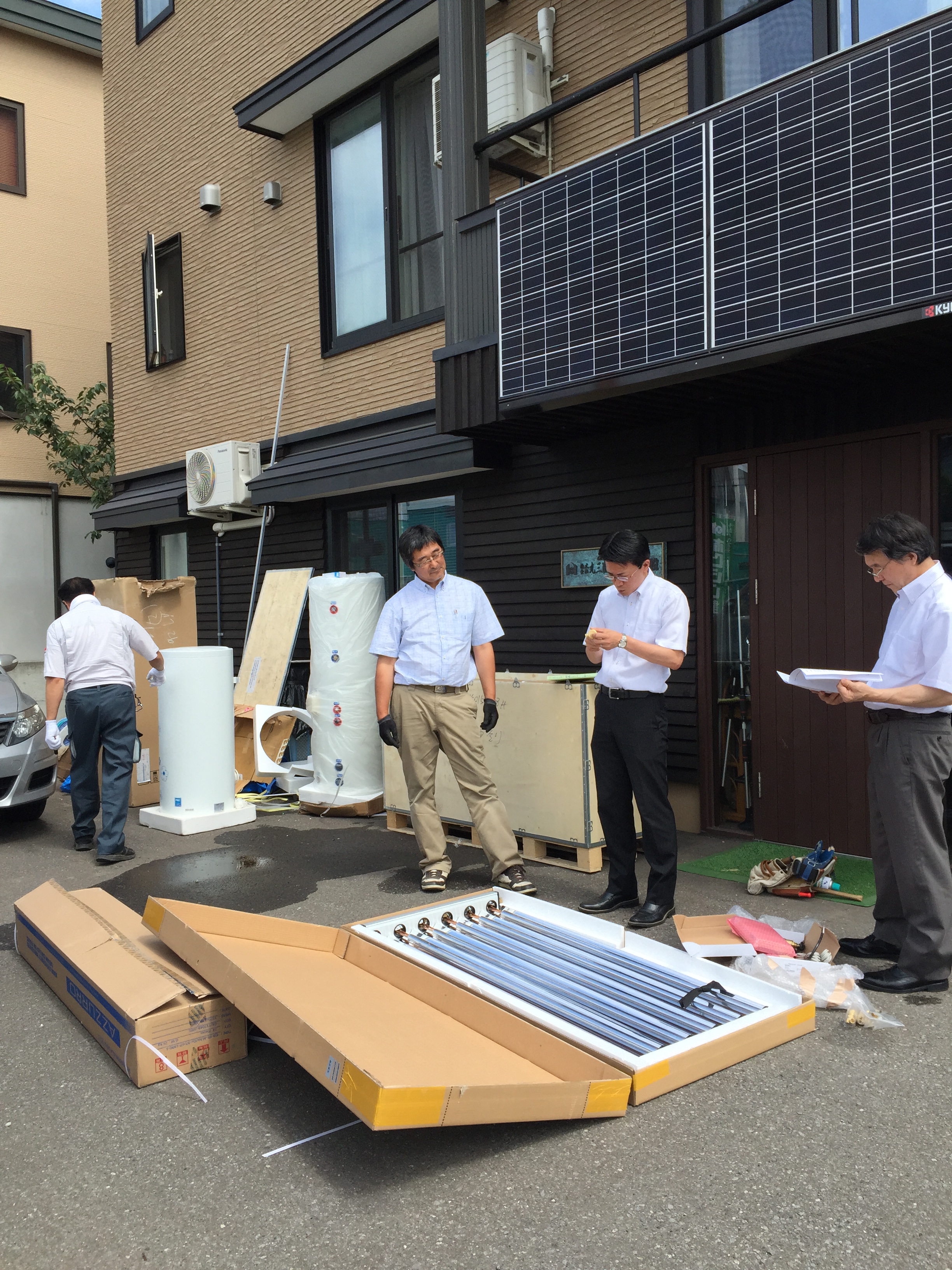 首藤社長の自宅でもすでに行っている 地中熱ヒートポンプと太陽光を利用した『光熱費0住宅』に加え、このたびのモデルでは お湯まで自然エネルギーで沸かしてしまおうというもくろみ。