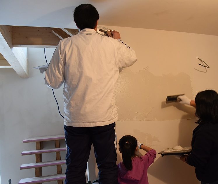 そしてそして もう一つの現場では 玄関の壁の塗り壁を ご家族3人で塗りました。