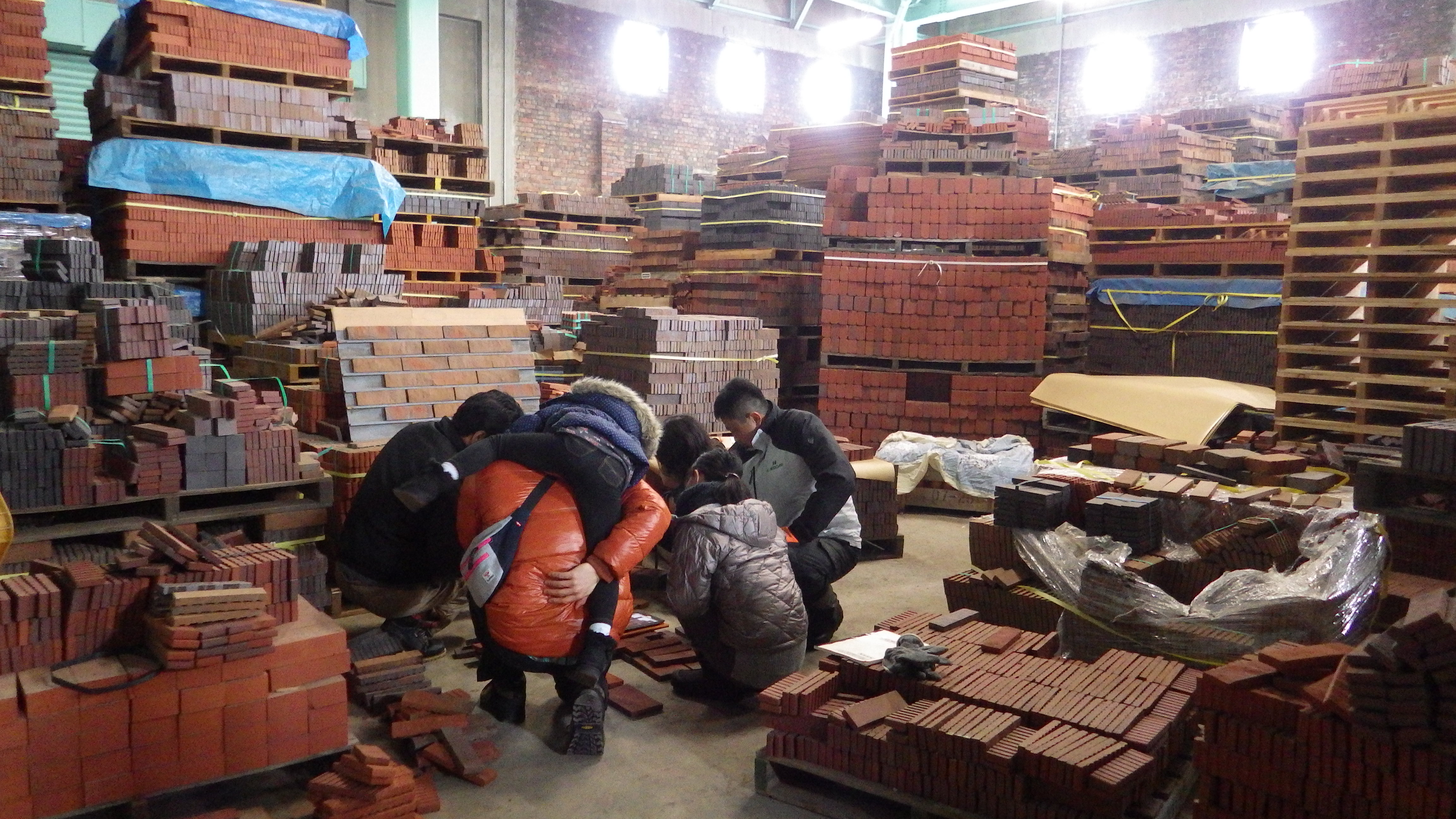 一つの現場では 煉瓦工場でキッチン、薪ストーブの下にひく煉瓦を選びに 工場へ。