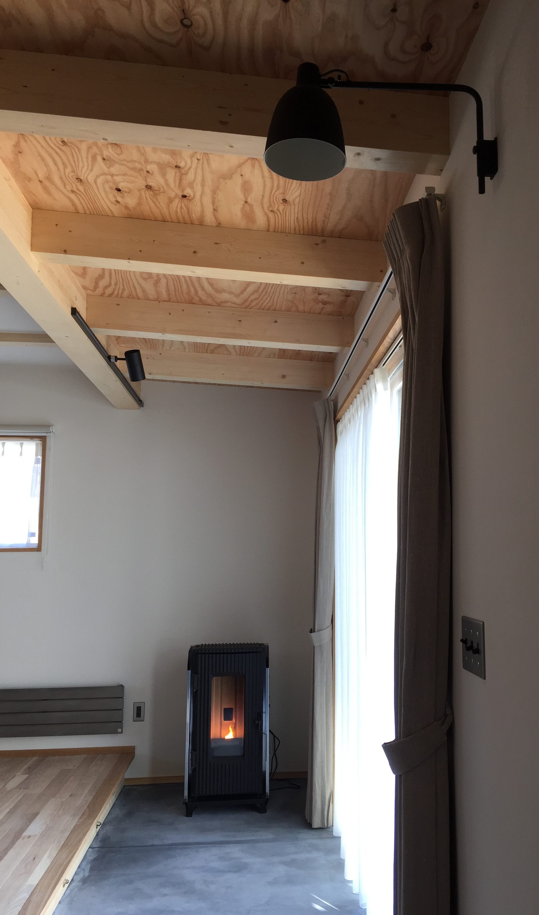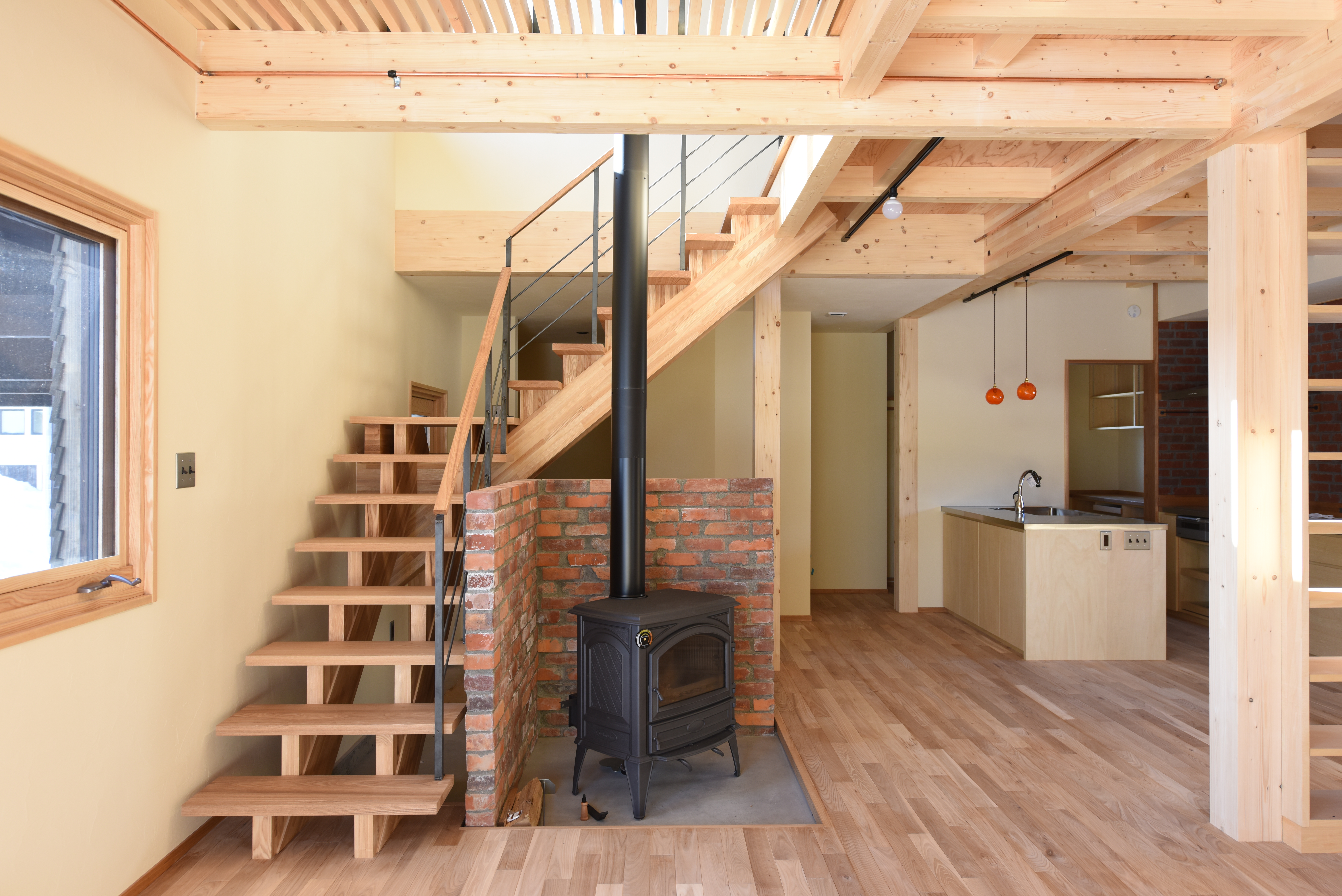 もう一つの物件では 薪ストーブを中心に家族みんなでくつろぐおうち。 薪ストーブの位置を決めるのに幾度と打合せを重ねたことを思い出します。2階の塗り壁には 全員の手形をつけ、家族みんなの家というお気持ちがあふれ出ています!
