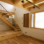 お庭を眺める大きな窓と吹き抜けの窓から陽が差し込み、クリアーの内装がさわやかな印象の仕上がりです。