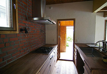 函館の静かな住宅街に建てられた自然素材にこだわった建物です。大工製作のキッチンも建物と調和し、